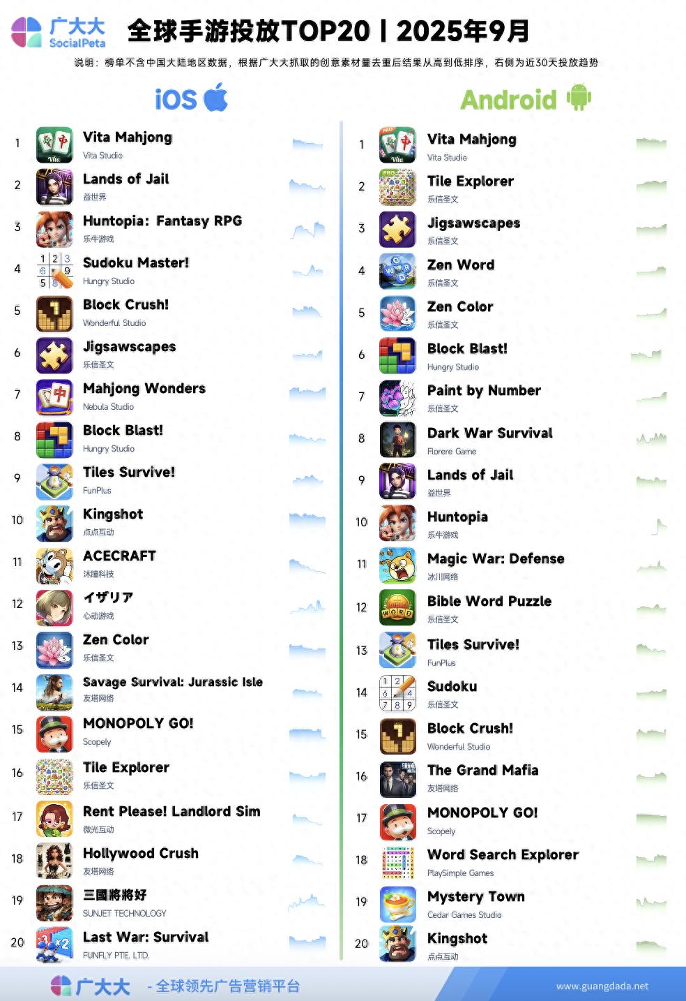 2025年9月全球手游投放TOP20榜单