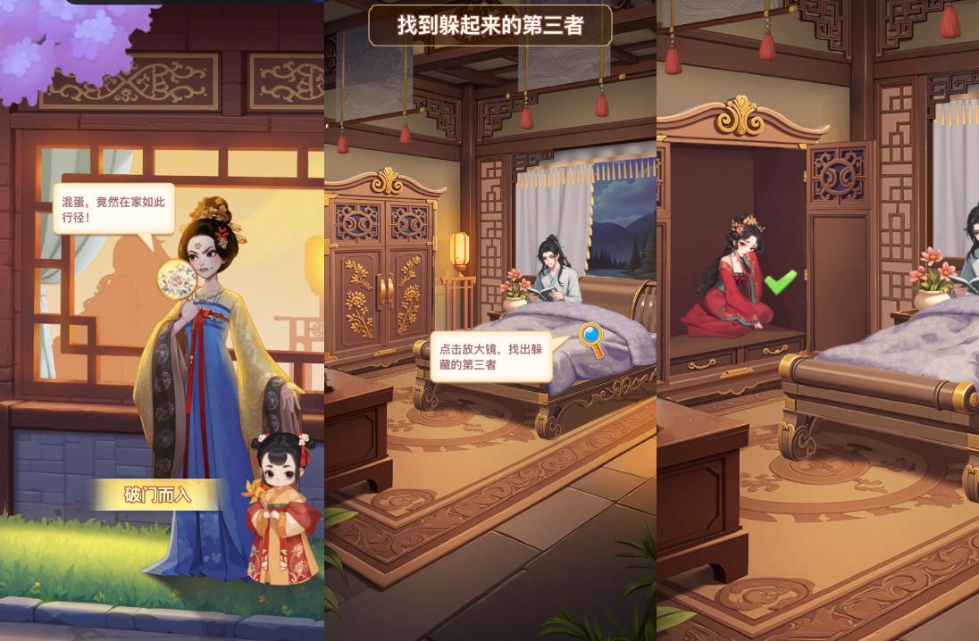 除了免费真花的鬼才营销爆火出圈外,【我的花园世界】还有非常扎实的买量功底。先看古代卖花剧情设定,估计不少人会很快联想到大热电视剧《国色芳华》。经典的离婚带娃妈也让人联想起那个最经典的“雪地破屋拯救悲惨母女”的买量广告,还有化妆类小游戏最爱的抓奸剧情,【我的花园世界】十分狡猾地将这些热门元素全部塞进剧情开头第一章第一节,集万千狗血热辣于一身。