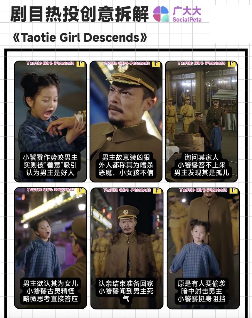 在该剧的热投素材中,主要展示萌宝的反差感,一方面古灵精怪人小鬼大,另一方面又身具饕餮之力,战力强大。下面这条为其在投素材中最热的一条,视频素材时长1min58s。