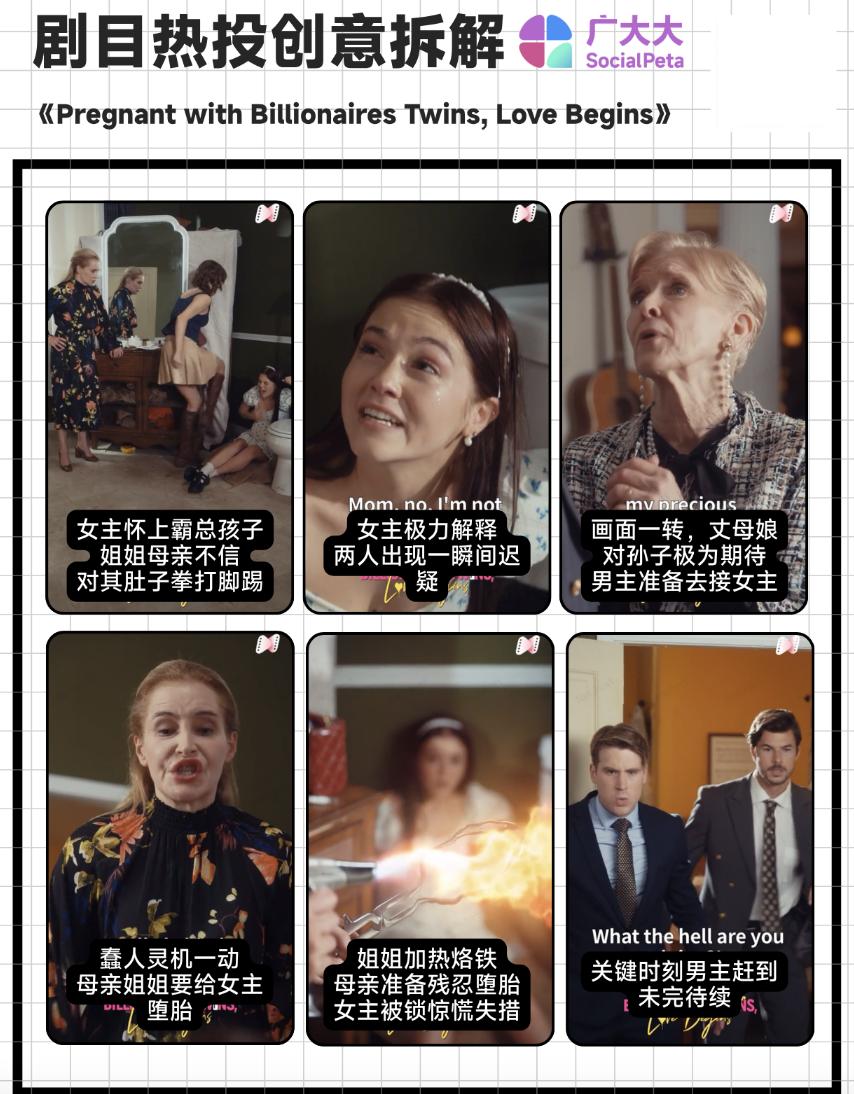 下面我们来浅拆下这条热门创意素材,该视频素材时长约4min32s,投放时间1天,展示估值已经达到了94K。剧情开篇直接用母亲姐姐虐待怀孕女主的残忍剧情引入,让观众对女主的遭遇产生同情;中间用男主这边丈母娘对未来孙儿的美好畅想形成对比,让观众对女主的境况更感焦急;剧情继续发展,母亲和姐姐虽然对女主孩子身份将信将疑,但残忍的两人还是决定给女主堕胎,而且是用烙铁这种极刑,最后男主赶到,但后续剧情仍然不得而知,给观众留下悬念。