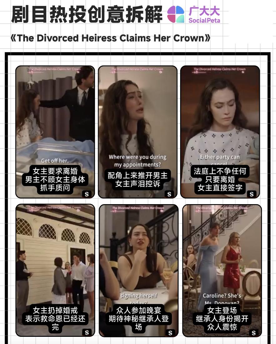 上面该剧上周的热投素材,也是在一开始就用离婚作为主要矛盾,但是在后面也重点描绘了这场离婚戏;通过两人的争吵让观众了解到,男主会比较经常地去照顾女二而忽视了女主的健康,甚至在怀孕期间都不屑一顾,这种没有落到实处的深情令人唾弃;后面的剧情部分则比较经典,三年之期已到女主回家摇身一变豪门继承人,打脸众人。