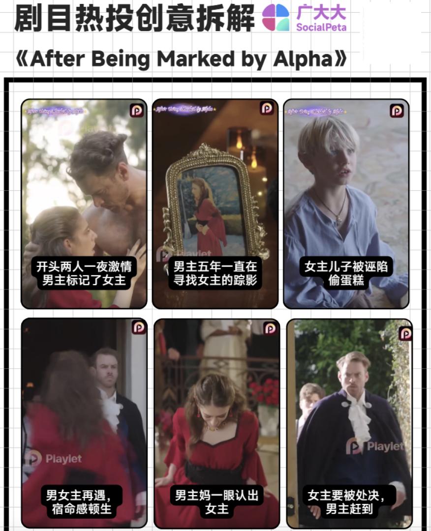 从其热投素材来看,创意核心主要围绕男女主一夜激情后,重逢相认再到女主打脸女配展开,本质仍是狼人题材的 “带球跑” 加虐恋情深的套路。开头设定为男主在野外战斗时,发现女主正是自己的“fated mate”(命定伴侣),两人随即情到深处、难分彼此,进度快到让人直呼 “这就是 ABO 吗”;五年后,女主因怀上男主的孩子 —— 且孩子是狼人,不仅遭受各种虐待,还被质疑孩子并非男主亲生,让人忍不住想吐槽 “不如赶紧滴血认亲”;最后,就在女主即将被处决的关键时刻,男主及时赶到。虽然观众早猜到男主会救下女主,但是好奇:他到底啥时候才会知道孩子是自己的?